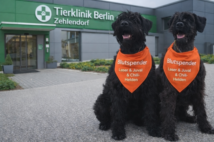 Auch in diesem Jahr wird wieder Blut gespendet. Neu im Team sind JUVAL und Laser. Zur Freude der Tierklinik hat Juval ebenfalls die Blutgruppe NEGATIV wie seine Mutter Chilli und wird daher gern gesehen.